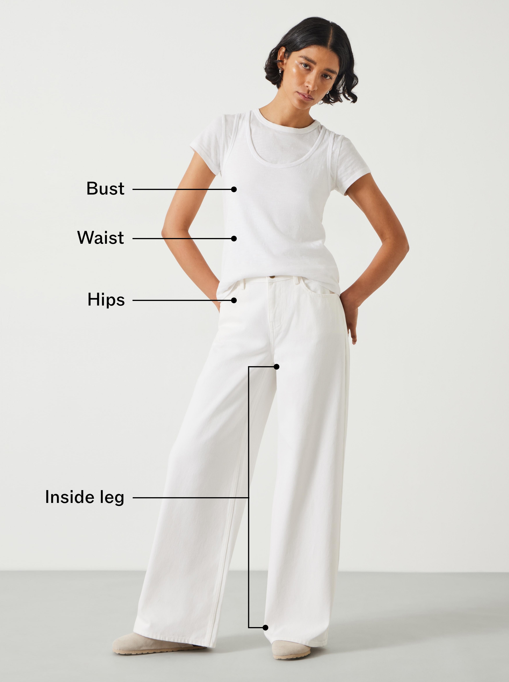Our clothes are made for you, and as much as we design them to look good, it’s just as important to us that they feel great. We’re all different, so where we can, we offer varied lengths in our trousers, and we have a size range that starts at a UK 4 and goes up to a UK 18.